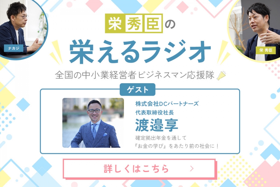 『栄えるラジオ』【6回目】株式会社DCパートナーズ代表取締役社長の渡邉享さんが確定拠出年金を通してお金の学びを当たり前の社会へについて語ります