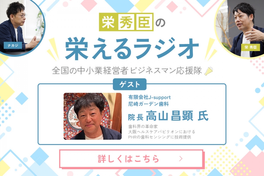 『栄えるラジオ』【7回目】尼崎ガーデン歯科院長の高山昌顕さんが大阪ヘルスケアパビリオンにおけるPHRの歯科センシングに技術提供について語ります